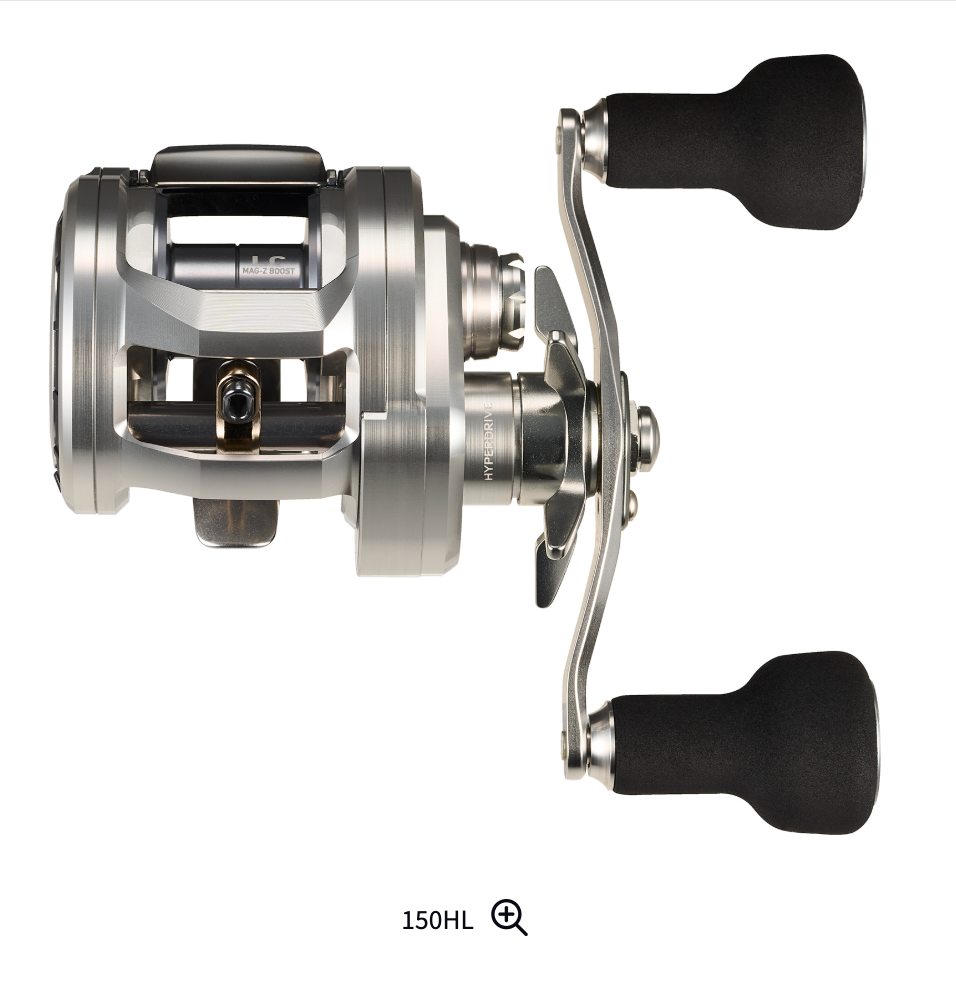The spool is made of 36mm high-strength aluminum and features the MAG-Z BOOST technology. After extensive field testing, we selected high-strength aluminum. This rod delivers long-distance casting performance by ensuring the necessary inertia for carrying medium- to heavy-weight lures. The redesigned spool shape optimizes the line winding. These synergistic effects enable the smooth trajectory and exhilarating casting feel characteristic of the LC Concept. Two gear ratios are available: 5.3 (59cm per handle rotation) for deep cranks, magnum cranks, large flying lures, and even mid-water dead-walking and cranking big baits; and 7.3 (82cm per handle rotation) for deep-water fishing requiring a high gear ratio or for maneuverability with big baits. The heavyweight-oriented reeling style provides a comfortable feel. The 7.3 gear ratio (150H/HL) model is equipped with a 100mm long handle and Powerlite M medium knob. Special specifications support easy reeling even with reeling jerks and heavy loads. This rod meets the requirements of being compatible with thick lines (20lb nylon - 100m, PE No. 4 - 100m) to prevent the risk of breaking large lures when casting. Naturally, it also meets the needs of saltwater fishing. |