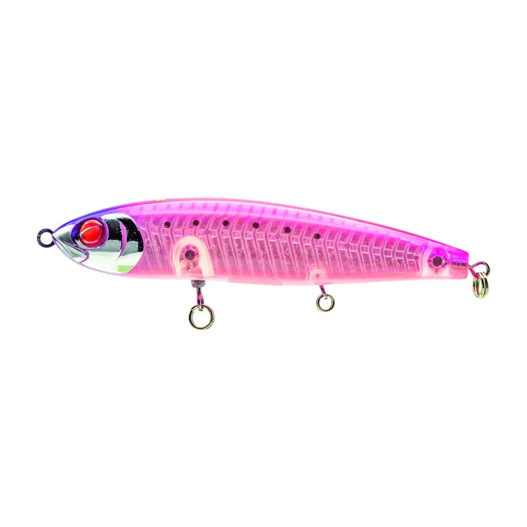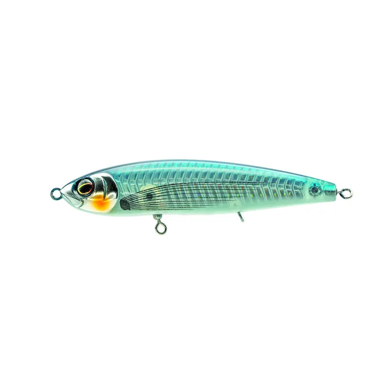 Make room for Mustad’s latest saltwater hardbait: The Oto Diving Pencil. For an unbeatable intense flash, the Oto boasts a transparent body with internal reflective material and ribbed construction. This design improves strength and buoyancy, leading to the stable action expected from a premium diving pencil. Adjust the action with a feather or blade on the added ringed eye. Fish will struggle to throw hooks on this bait because of the partially integrated swivels both in the belly and tail. Pre-rigged with Mustad’s new Jaw Lok Treble Hooks, triple forged for impressive strength.