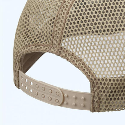 - Uses a W snapback adjuster with excellent holding power. Mesh fabric with low gloss creates a calm atmosphere.