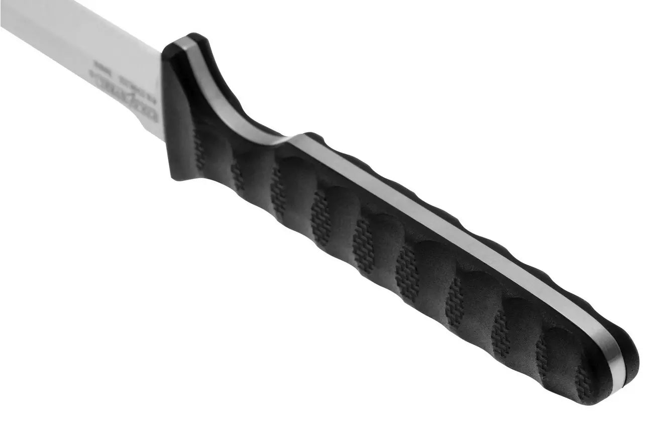 Our Spike series neck knives are slim, light and super-tough. Their razor sharp, zero ground blades, are complemented by heavily scalloped, textured handle scales that offer a comfortable and secure grip. The Spike's ergonomic handles feature Integral quillons that provide a safe stop for index finger and thumb, while deeply textured and sculpted Griv-Ex provides excellent positive traction even when your hands are cold, wet and slippery. Available in four distinctive blade shapes (Bowie, Drop Point, Tokyo and Tanto point) they offer all the strength of a one-piece solid steel construction while still being light enough to carry all day without fatigue. Each Spike is supplied complete with a Secure-Ex sheath that provides excellent retention and safety.