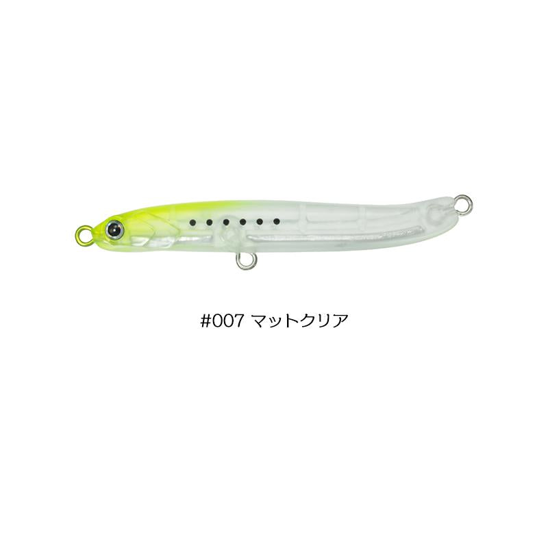 The long, slim body and rear-centered weight allow for outstanding casting distance, making it a powerful ally for bank fishing. A simple retrieve produces a unique subtle vibration action, and a subtle backslide with a gentle tremor as it falls. In addition, this backslide action allows you to send the lure further in from the water for tighter attacks when approaching cliffs or berths in light boat games. It stimulates the predatory instincts of all kinds of targets, including horse mackerel and rockfish.